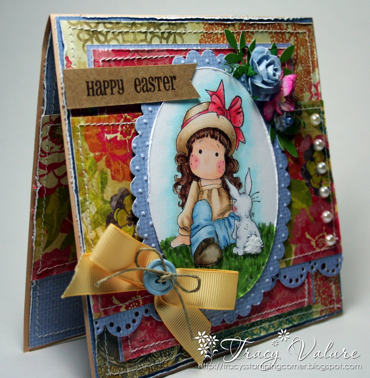 Isn't she adorable..just like me?? hehe I colored her with Copics. I did add a cloud background, it's really faint in the picture. The papers I used are from an old paper pack by Close to my heart.