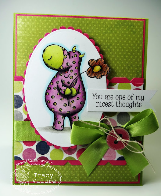 Isn't Phyllis fun? I colored her with Copics and did some shading with prisma colored pencils. The paper is from MME. The sentiment is included with the set.